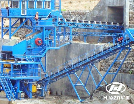 該生產(chǎn)線的破碎過程:顎式破碎機中進行簡單的粗碎,然后進入圓錐破碎機中進行細碎,最后進入振動篩進行篩分。合格的石料經(jīng)由皮帶輸送機進入洗選后進入成品區(qū),不合格的石料再次進入圓錐破碎機進行破碎,從而形成閉路循環(huán),保證石料的質(zhì)量規(guī)格。最后破碎物料顆粒三種規(guī)格 0-5 5-16 16-31.5。