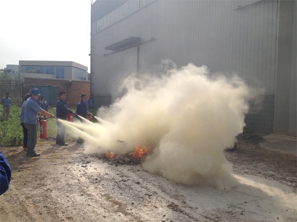 參加演習人員有各部門、各車間新入職員工和各車間班組長及安全員,機加車間主任張自力,金構車間主任鄧興軍、曹永祿,液電車間主任王海濤、張孟喜,制造部長張彥寶等領導都帶頭參加滅火演習。在滅火演練前,公司安全員吳建國首先把怎樣使用滅火器材和滅火注意事項進行講解:一是在日常消防工作中一定要把預防火災放在首位,積極貫徹落實各項防火措施,防患與未然,最大限度減少火災;二是一旦發(fā)生火災要及時有效予以撲滅創(chuàng)造條件,減少火災危害和最大限度減少火災所造成的人身傷亡和財產(chǎn)損失;三是正確使用滅火器材,撲滅火災時,把滅火器上下顛倒幾次,離火點3-4米時,拔出保險銷,一手握噴嘴,一手將壓把壓下,干粉向火的根部噴出,滅火要徹底迅速,不要遺留殘火,以防復燃。