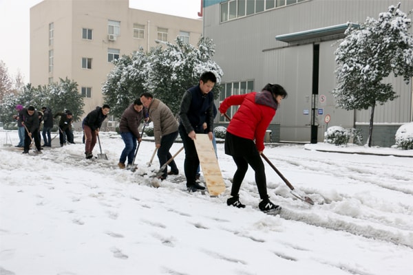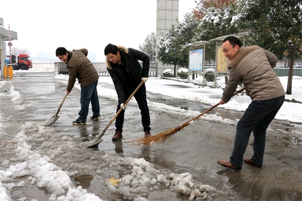 同事們不畏嚴(yán)寒,積極主動(dòng)、相互配合、齊心協(xié)力,冒著凜冽的寒風(fēng),清掃著冰雪的路面,許多人的手和臉都被凍得通紅,鞋子也被浸透,然而,這一切絲毫沒有影響大家的勞動(dòng)熱情,他們團(tuán)結(jié)協(xié)作,掃的掃、鏟的鏟井然有序的干的熱火朝天,經(jīng)過一個(gè)多小時(shí)的奮戰(zhàn),公司辦公樓、車子棚及各車間通道都被打通,確保員工出行和樹木安全。