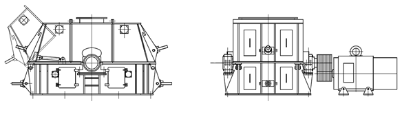 (6)齒輥式破碎機。常見的輥式破碎機是一對圓柱形的輥子相互平行水平地安裝在機架上,兩個輥子級相 向旋轉。物料由頂上的進料口喂入,落在轉輥上面,在輥子表面的摩擦力作用下,被扯進轉輥之間受到輥子的擠壓而破碎。破碎后物料 被輥子推出,向下卸落。由于它是強制卸料,并有刮板裝置清掃輥面,因此破碎黏濕物料也不致堵塞。