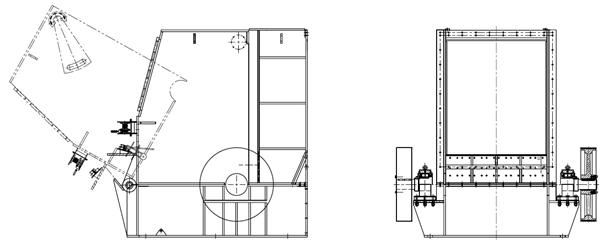 ③反擊式破碎機。反擊式破碎機是20世紀中期才出現(xiàn)的新機型,其形式與錘式破碎機很相似。洛陽大華重 型機械有限公司生產的反擊式粗碎機(如圖2所示)是中法合作開發(fā)的大型粗碎反擊式破碎機。其最大型號是BP55。最大進料粒度< 1400mm,出料粒度150mm,裝機功率650kW,生產能力為1100t/h。BP系列粗碎反擊式破碎機主要用來加工石灰石、 白云石之類較軟物料 。主要特點是進料大,出料小,粒形好。