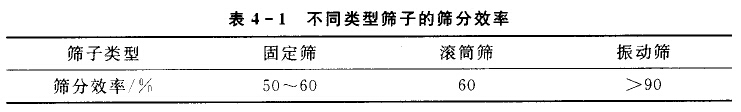 篩于運(yùn)動方式對篩分效率有較大的影響,同一種團(tuán)體廢物采用不同類型的 篩子進(jìn)行篩分時,其篩分效率大致如表4—1所示。