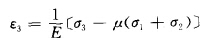 此理論認為,在三個主應力全是拉伸的情況下,以其中最大拉應力(σ3)是否達到某一臨界值來作為判斷物體破壞的依據(jù),而對其余兩個拉應力則不考慮;在拉應 力和壓應力共同作用的情況下,則以最大拉伸應變達到某個限度 作為物體是否發(fā)生斷裂的依據(jù),而這個限度可以通過試驗確定。最大拉伸應變ε3為: