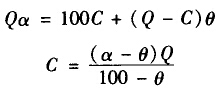 (2)原料中小于篩孔尺寸的粒級的質(zhì)量,等于篩上產(chǎn)物與篩下產(chǎn)物中所臺有的小于篩孔尺寸的物料的質(zhì)量之和,即Qα=100C+Tθ(2-1-5)