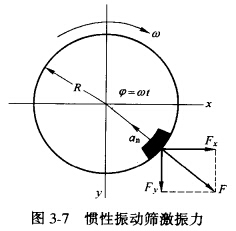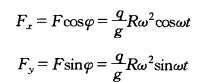 這個離心力F稱為激振力,它的方向隨偏心重塊所在位置而改變,指向永遠(yuǎn)背離轉(zhuǎn)動中心。 在任意瞬時t,F(xiàn)與x軸的夾角為ψ,且ψ=ωt,則F力在x和y軸方向的分力為