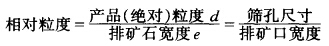 該曲線是由大量生產(chǎn)數(shù)據(jù)的平均統(tǒng)計(jì)得來(lái)的。生產(chǎn)實(shí)踐證明,用同一類型碎礦機(jī)破碎礦石,產(chǎn)品的粒度特性曲線形狀取決于被破碎物料的性質(zhì),主要的是它的硬度。因此在沒(méi)有實(shí)際資料的情況下,可以運(yùn)用這三種典型粒度特性曲線。為了運(yùn)用方便,橫坐標(biāo)不是直接用粒度的絕對(duì)值表示,而是用相對(duì)粒度表示。它們之間的關(guān)系如下: