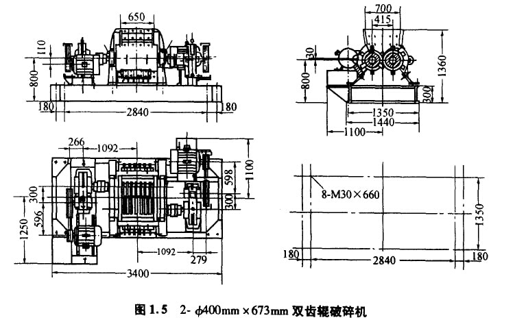 圖1.5是一種用于破碎粘土的雙齒輥破碎機,具有如下特點: