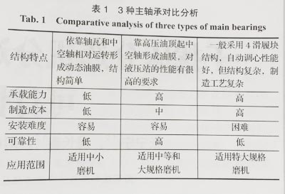 通過對3種不同的主軸承進行對比分析,總結(jié)了各自的優(yōu)缺點,提出了主軸承的選用原則,并結(jié)合生產(chǎn)實際分析了這3種主軸承的適用情況,為礦用磨機主軸承的選用提供借鑒。