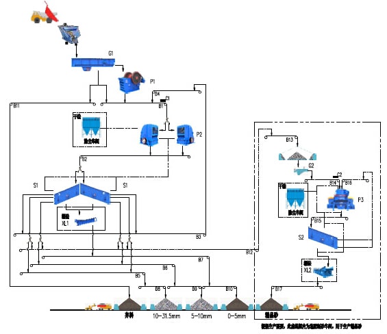 工藝簡(jiǎn)單,占地面積小,系統(tǒng)設(shè)備破碎比大,生產(chǎn)效率高,運(yùn)行成本低,成品粒級(jí)分布均勻,粒型好,滿足建筑行業(yè)多種領(lǐng)域?qū)λ霉橇系囊蟆?/p>