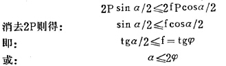 由上可知:顎式破碎機(jī)的嚙角應(yīng)小于礦石對(duì)顎板面的摩擦角的兩倍,否則礦塊就會(huì)在破碎腔中跳動(dòng)而不能被破碎機(jī)破碎。對(duì)輥破碎機(jī)的嚙角,也可以用力的分析方法求出,如圖1所示。當(dāng)一個(gè)輥?zhàn)右訮的壓力作用在礦塊上,則另一個(gè)輥?zhàn)釉谙鄳?yīng)的地方,也以P的反作用壓力作用在礦塊上,此壓力P除對(duì)礦石有破碎作用外,還在礦塊與輥?zhàn)拥慕佑|點(diǎn)引起摩擦力fP。P力和fP力都可以分解為水平分力及垂直分力。P力分解的垂直分力為Psina/2,其作用是使礦石向上跳動(dòng)的。fP力分解的垂直分力為fPcosa/2,其作用是使礦石向下的。要使礦塊在兩個(gè)輥?zhàn)又g被破碎而不致向上跳動(dòng),則