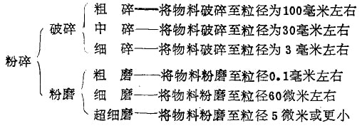 根據(jù)所處理的物料塊尺寸大小不同,粉碎作業(yè)往往還作如下進一步區(qū)分: