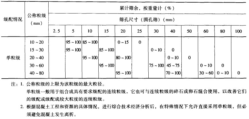 ①顆粒級(jí)配:碎石或卵石的顆粒級(jí)配.一船應(yīng)符合表3-48的要求。