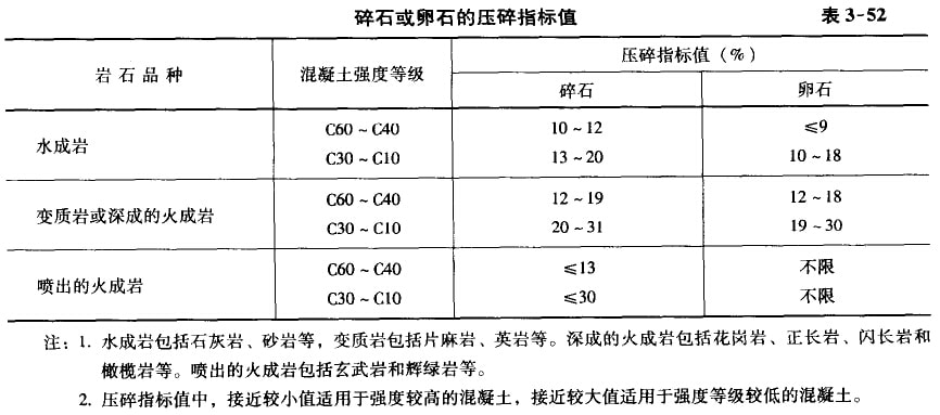 碎石或卵合的壓碎指標(biāo)值可參照表3—52的規(guī)定采用。