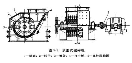 錘式中碎機(jī)有很多形式,但是我國過去使用的主要是承擊式破碎機(jī)(如圖5-5所示)。