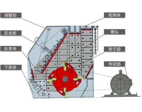 新型轉(zhuǎn)子體能夠提供極高的轉(zhuǎn)動(dòng)慣量和錘頭沖擊破碎力,提高物料一次破碎成品率。